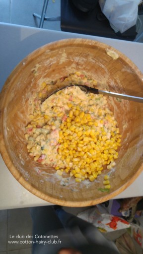 4. Ajouter ensuite le maïs correctement égoutté et mélanger.