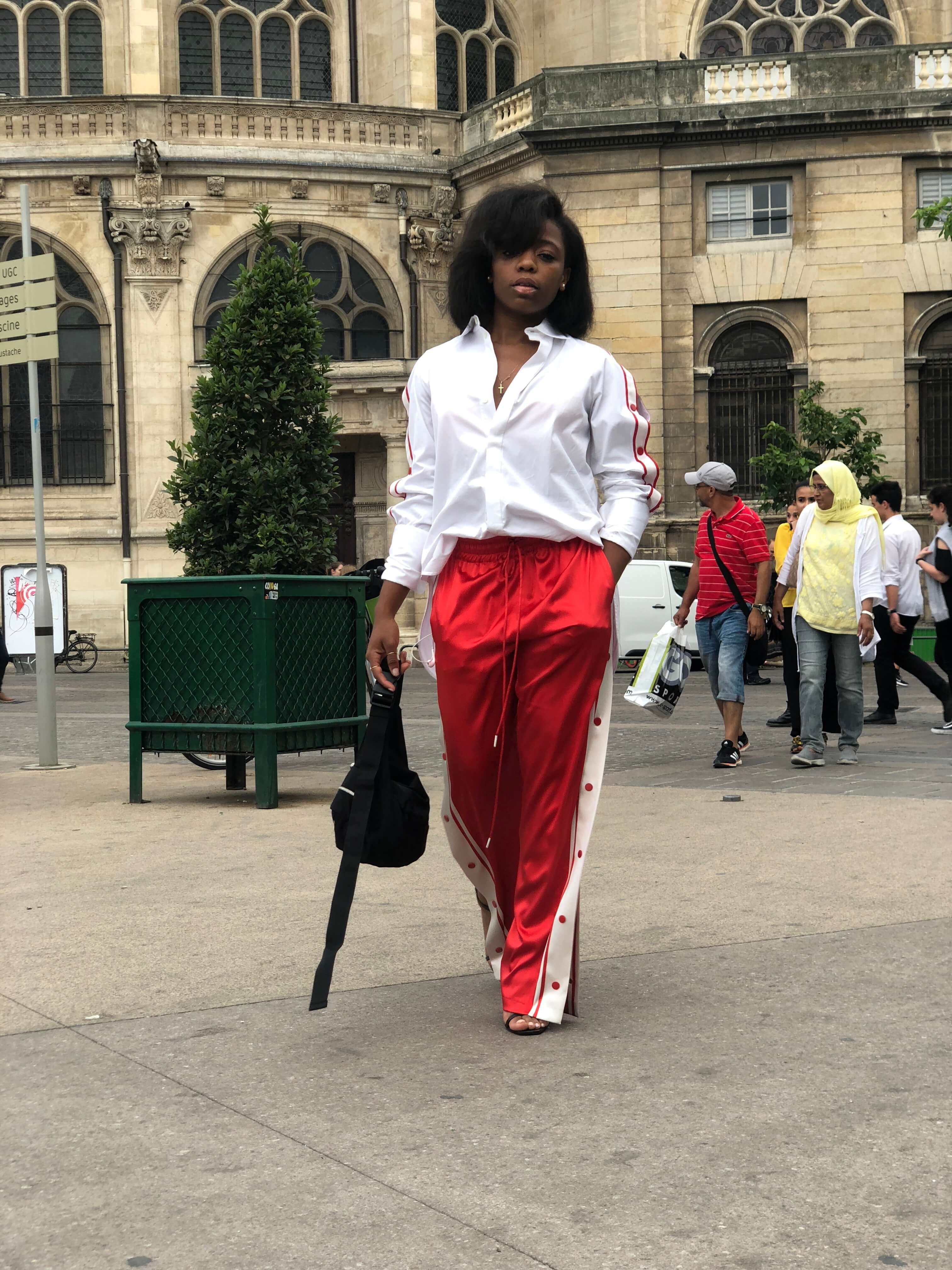 Je vous passe mon état lorsque Maria Luis a reçu sa sélection de la collection Printemps/été 2018. J’ai jeté mon dévolu sur trois pièces. Les deux premières font l’objet du look d’aujourd’hui. Un pantalon sportswear issu de la garde robe masculine et une chemise blanche. Rien de folichon me direz-vous, et pourtant…
