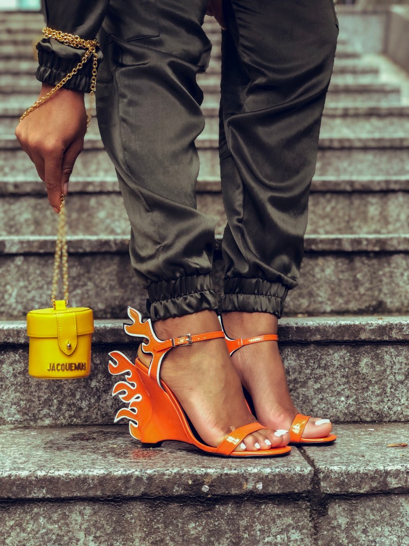 Quand vous décidez d’oser un mix and match entre des éléments issus d’univers divers, autant ne pas être timide: des mules à talons super classiques? Le gilet façon gilet par balles inspiré des looks de Virgil Abloh pour Louis Vuitton homme? Tout ira bien.