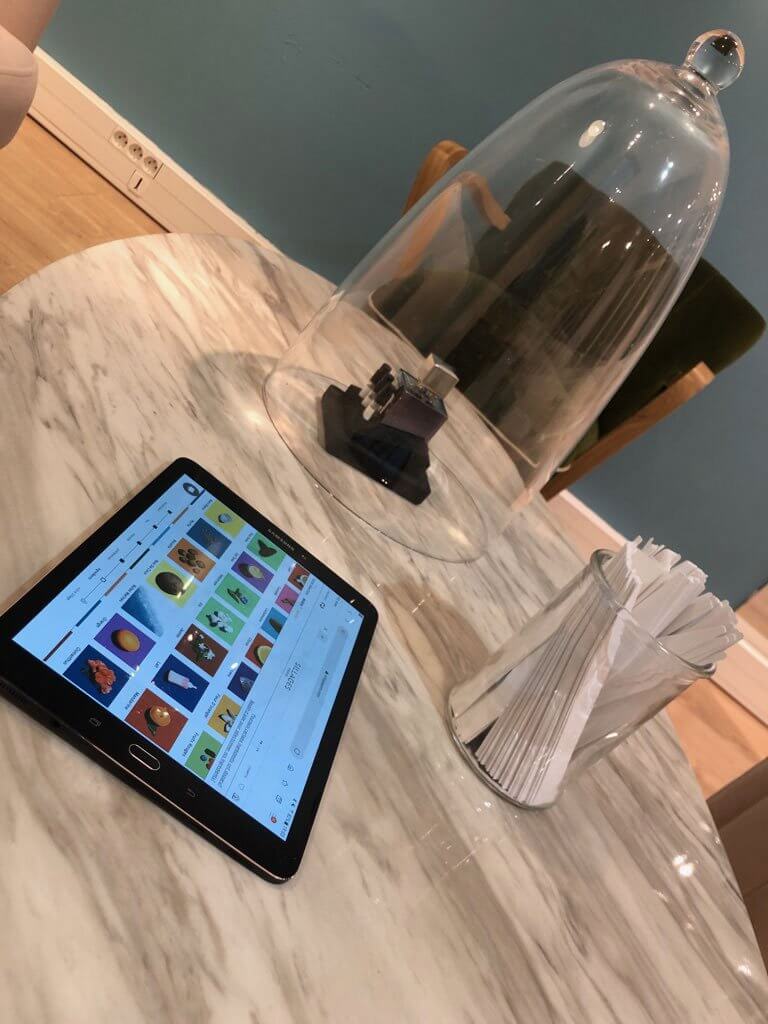 J’ai été assez bluffée par sa connaissance en matière de parfum. En effet, il a su trouver la note de cœur commune à trois de mes parfums sans avoir à consulter leur bibliothèque de parfums en ligne, que nous avions à disposition sur un iPad.